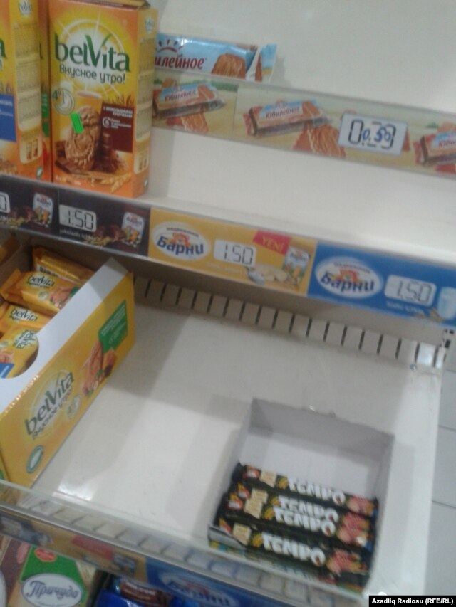 Bakıda kiçik marketlərə girən kimi bomboş vitrinlər diqqət çəkir, gündəlik tələbat mallarından bir çörək var, bir də meyvə-tərəvəz. Qalan məhsulların da ya vaxtı çıxmaqdadır, ya da alıcının bəyənmədiyi şirkətin məhsuludur. Elə supermarketlərdə də bəzi bölmələrdə «qıtlıq» gözə girir, çeşidlər azalıb.