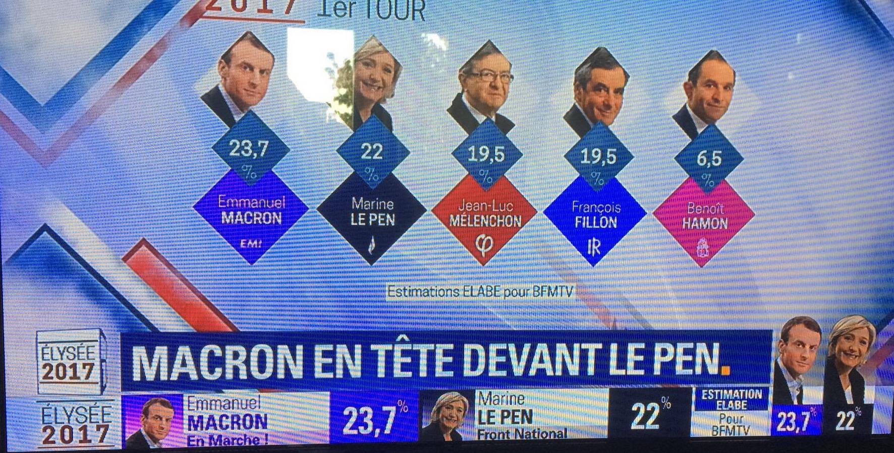 Fransada prezident seçkisinin birinci turunda ilkin məlumatlara görə mərkəzçi Emmanuel Makron və ifrat sağçı Marine Le Pen səslərin çoxunu qazanaraq seçkinin mayın 7-də keçiriləcək 2-ci turuna keçiblər.