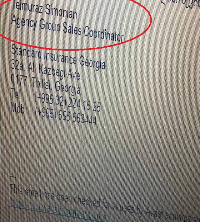 Sübut olaraq isə Teymuraz Simonyan adlı erməni işçisinin imzasını, həmçinin erməni Simonyanın sığorta şirkətinin rəsmi e-mailindən istifadə etdiyi foto təqdim edilib.